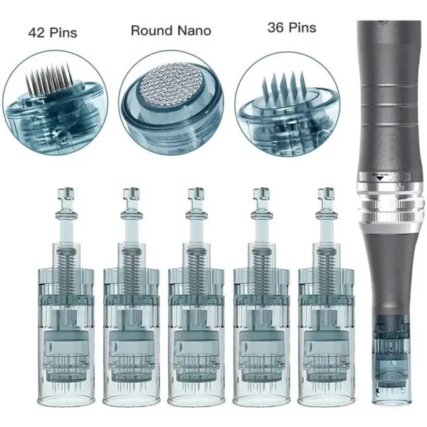 Agujas / Cartuchos para Dermapen Dr. Pen M8S (Varios Tipos) Los cartuchos de agujas para Dermapen Dr. Pen M8S son repuestos desechables diseñados para realizar tratamientos de microneedling y nanoneedling, ayudando a estimular la producción de colágeno, mejorar la textura de la piel y favorecer la absorción de principios activos.