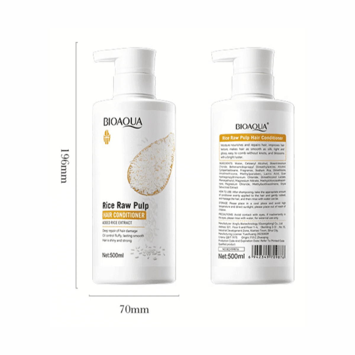 El Acondicionador de Arroz Bioaqua Rich Raw Pulp está formulado con extracto de arroz natural, conocido por su alto contenido en aminoácidos y antioxidantes que nutren profundamente el cabello, dejándolo suave, sedoso y con un brillo saludable desde la raíz hasta las puntas.