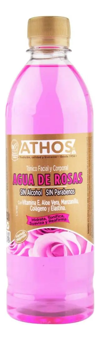 Agua de Rosas Athos 500 ml Ideal para el cuidado de la piel, proporciona hidratación y frescura. Perfecta para tonificar y revitalizar el rostro