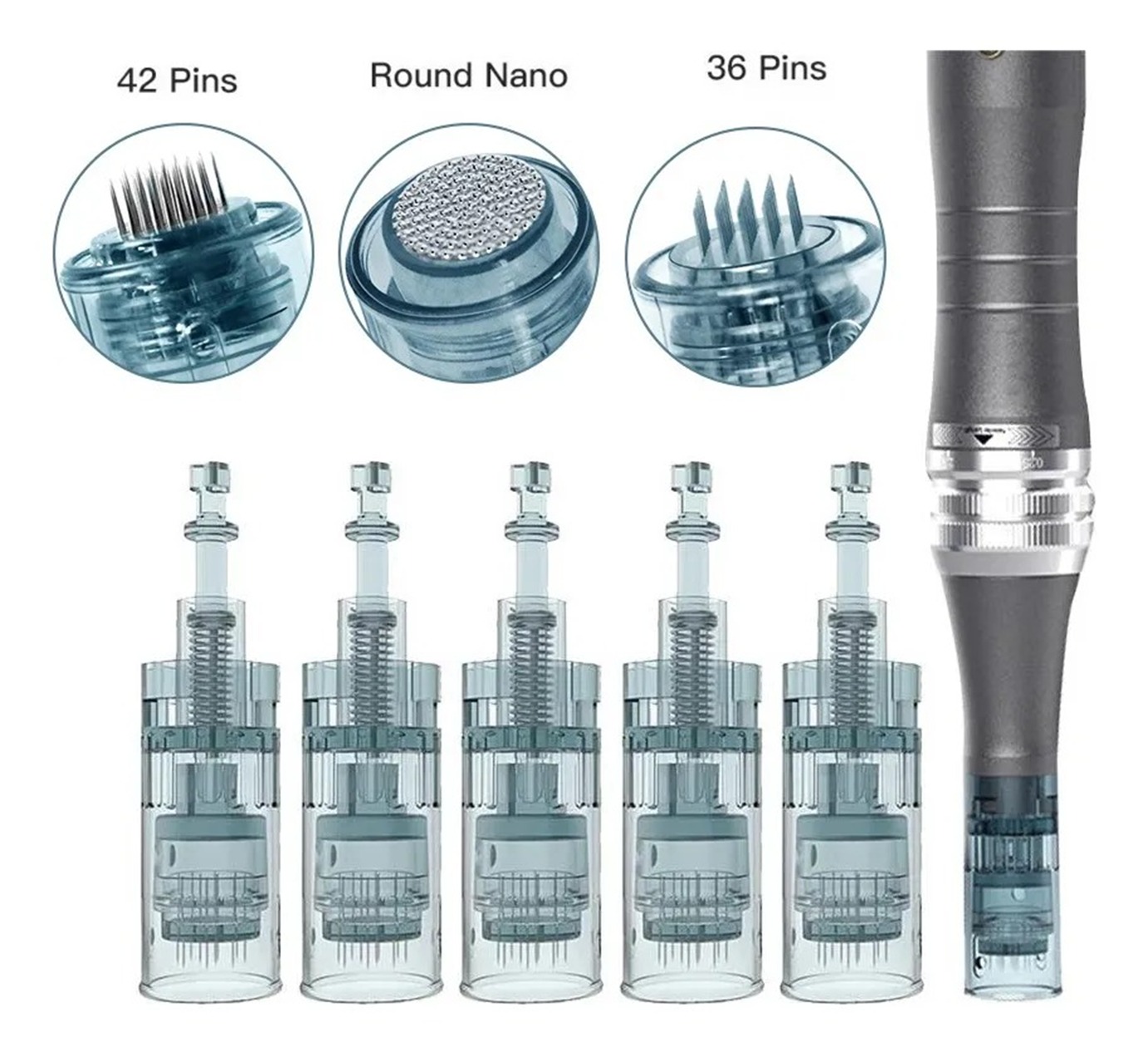 42 Pins – Ideal para trabajar áreas más amplias y tratamientos de rejuvenecimiento facial, ayudando a mejorar textura y luminosidad de la piel.