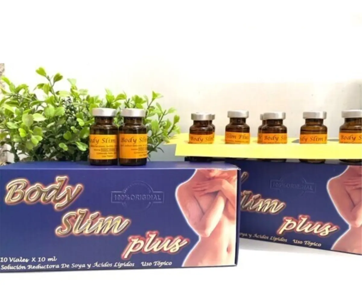 Modo de Uso: Hidrolipoclasia y mesoterapia. los fosfolípidos provenientes de la lecitina de soya son sustancias que actúan como emulsificante de las grasas, facilitando su transporte y eliminación de forma natural. permite la remodelación del contorno corporal, combate la celulitis, disminuye la grasa localizada y favorece la reducción de medidas. El paquete incluye 1 vial 10 ml body slim plus lecitina de soya mesoterapia