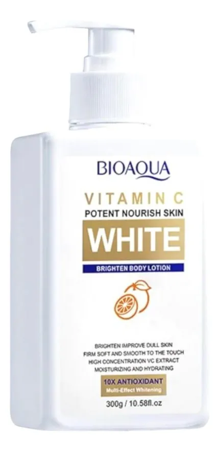 1 CREMA CORPOR ACLAR VITAMIN C WHITE BIOAQUA 300gr Elimina la piel seca y áspera, Nutre y rejuvenece con vitamina C y elastina para blanquear e iluminar