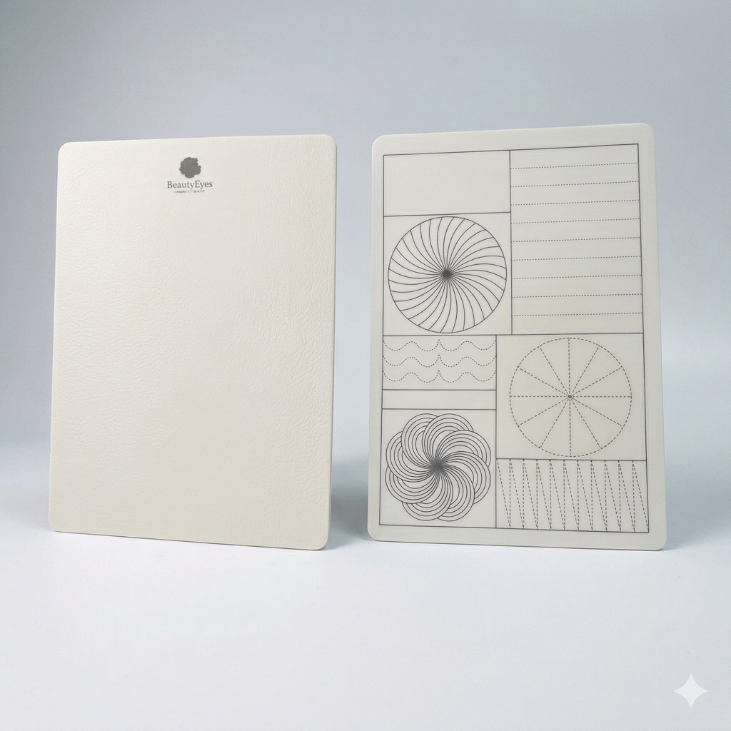 Lámina de silicona flexible con textura similar a la piel real, ideal para prácticas de micropigmentación y diseño de cejas. Incluye figuras geométricas, líneas de trazos y logo “BeautyEyes”. Duradera, higiénica y perfecta para entrenamiento estético.
