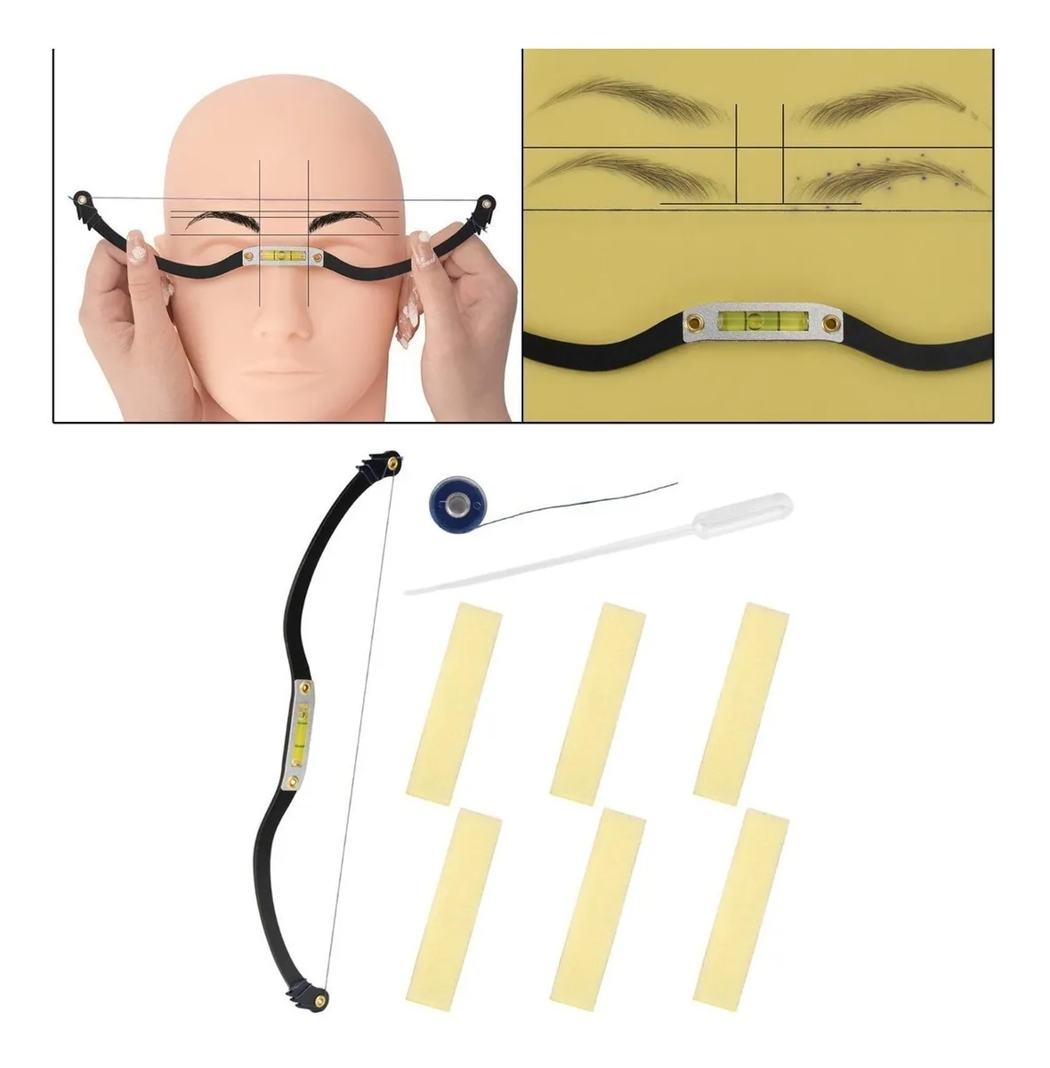 La regla arco lineal para diseño de cejas con nivel es una herramienta profesional diseñada para lograr cejas perfectamente simétricas y proporcionadas durante procedimientos de microblading, micropigmentación, henna o depilación de cejas.